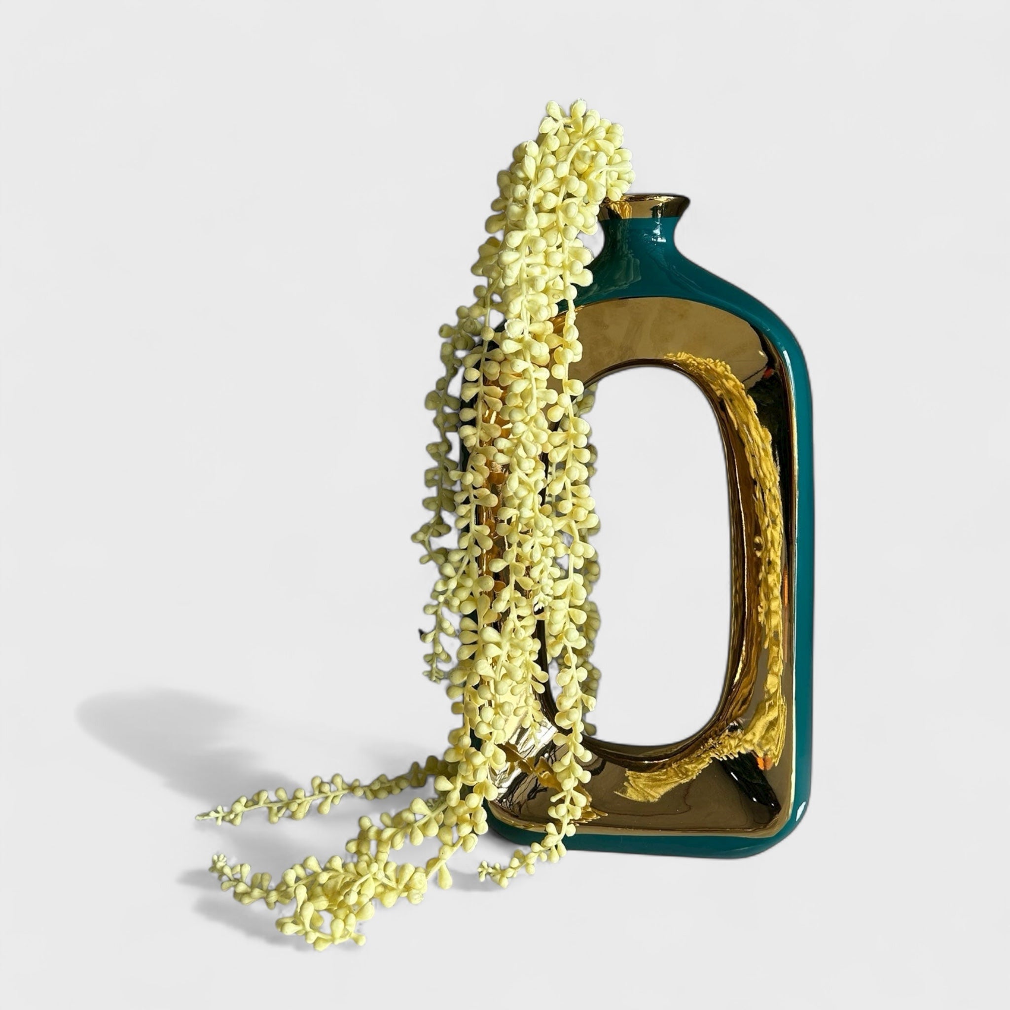 ეს მწვანე აქცენტი ინტერიერში სიმსუბუქესა და სითბოს შემოიტანს, იდეალურია როგორც მინის, ასევე მეტალის ვაზებთან შესახამებლად.