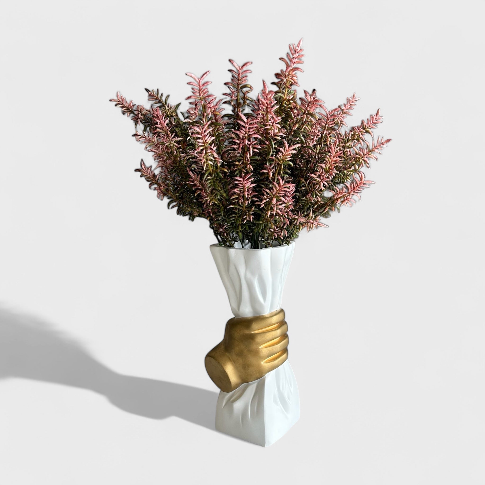 ელეგანტური და ბუნებრივთან მიახლოებული ვარდისფერი-მწვანე კომბინაცია ვაზას განსაკუთრებულად დეკორატიულ იერს ანიჭებს.