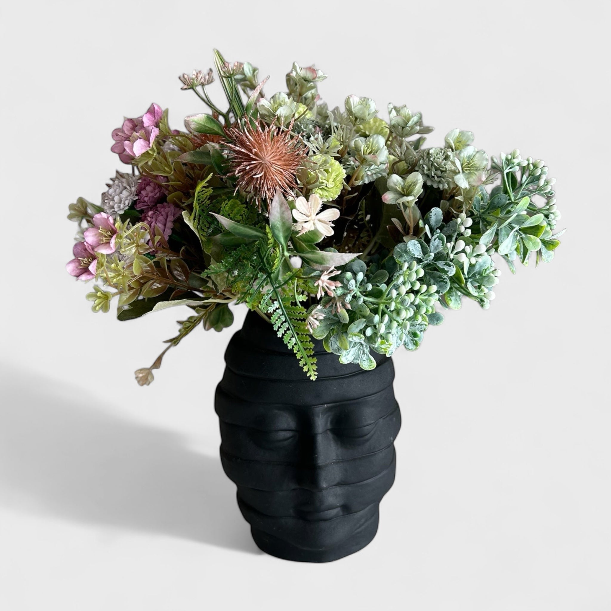 ვაზაში განთავსებული აწყობა ოთახს მატებს სიმშვიდესა და ფერთა ნაზავიდან წამოსულ სითბოს. არ საჭიროებს მოვლას, მაგრამ ყოველთვის ინარჩუნებს ახალი ყვავილების იერსახეს.