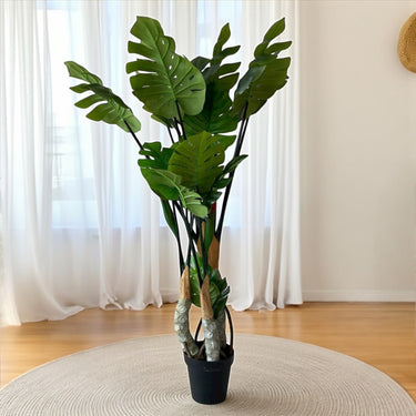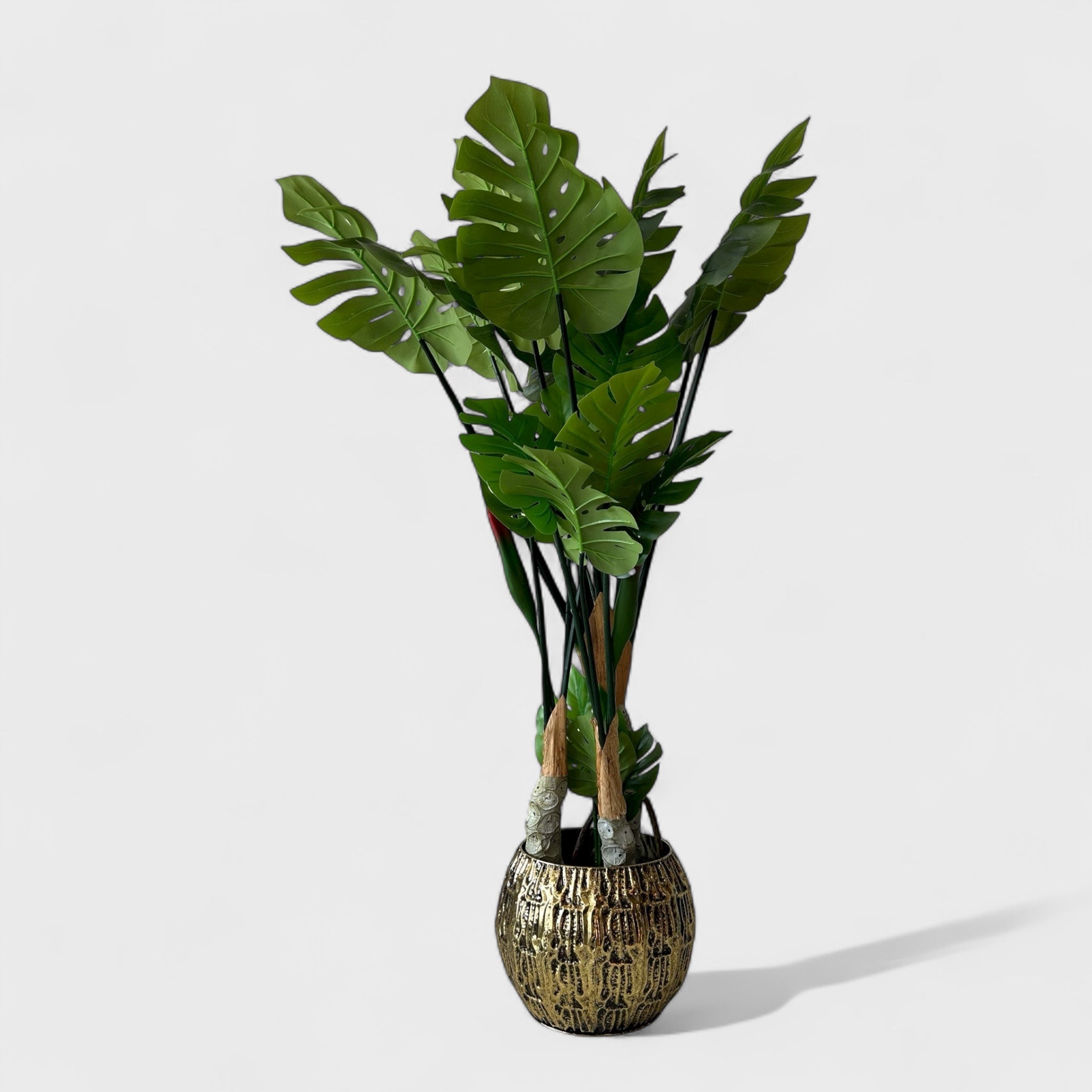 მცენარის ფართო და ფიგურალურად გაჭრილი ფოთლები ინტერიერს მატებს ბუნებრივ დინამიკას და ქმნის თანამედროვედ გამწვანებულ გარემოს.