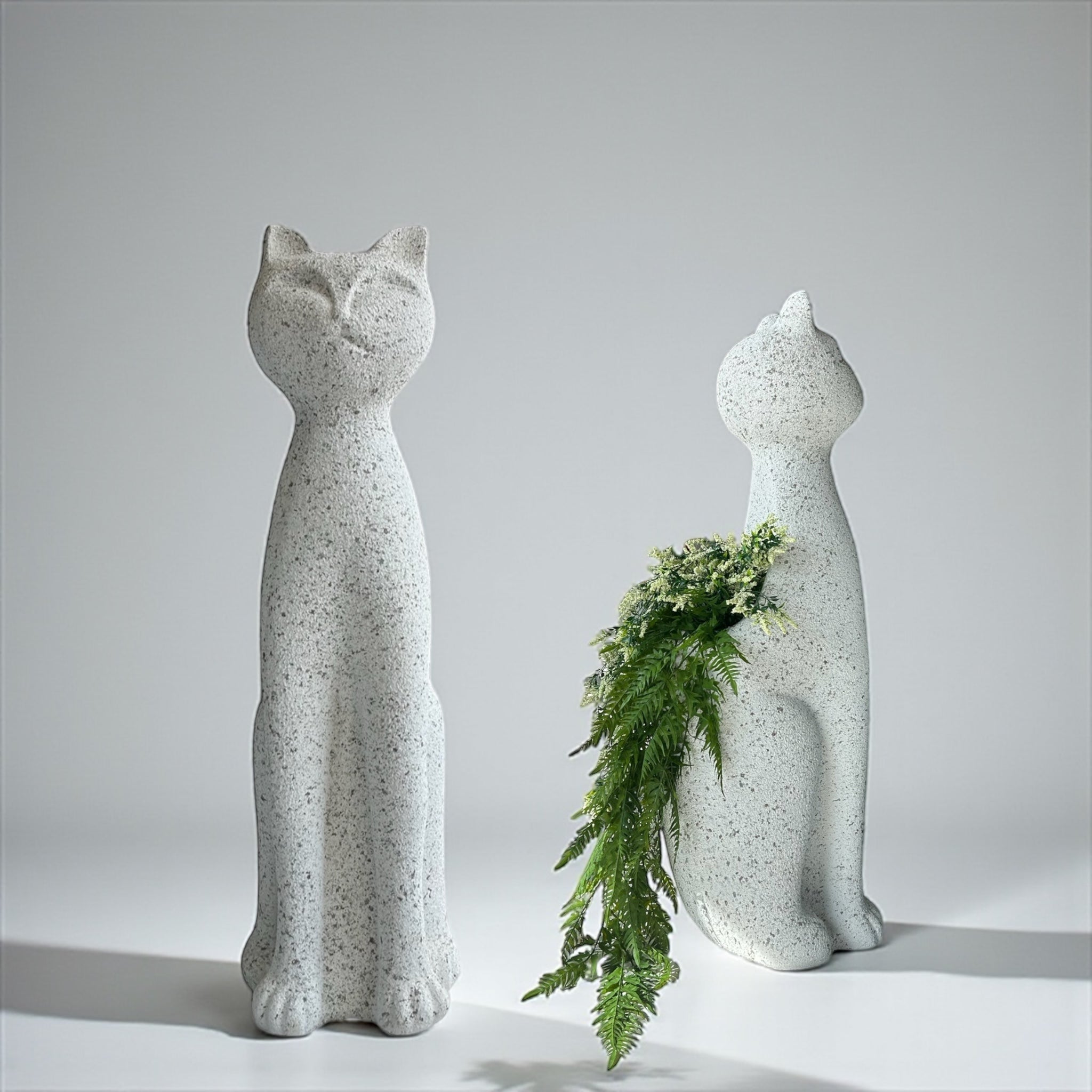 კატების ფიგურების სერია ქმნის ელეგანტურ ატმოსფეროს, რომელიც ინტერიერს სითბოსა და ხასიათს მატებს.