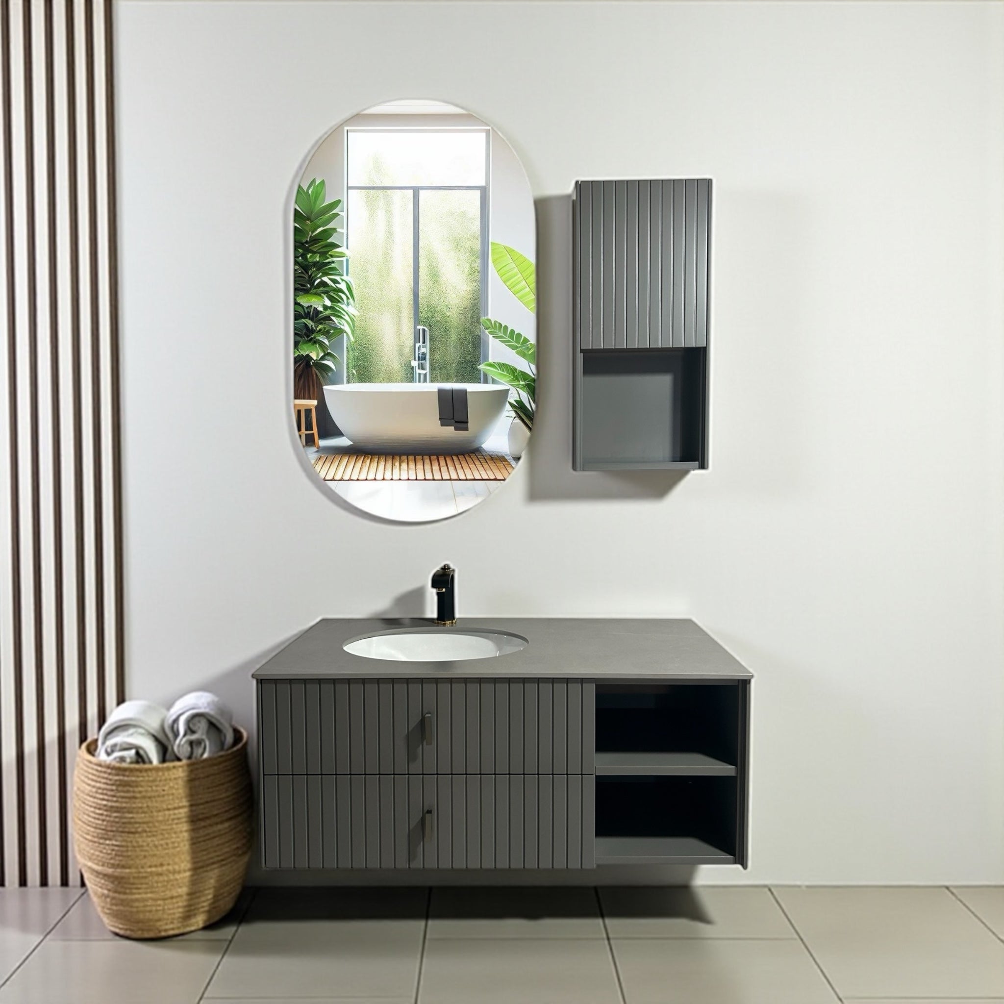 Type სარკე ლედ განთებით,პანელის ტექნოლოგიით დამუშავებული ხე (ნესტგამძლე),უჟანგავი რკინის დეტალებით,კერამოგრანიტის ზედაპირი უჟანგავი ონკანი კერამიკის ნიჟარა.