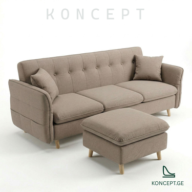 მტკიცე ხის კონსტრუქცია და რბილი ქსოვილი უზრუნველყოფს როგორც გამძლეობას, ისე ყოველდღიური გამოყენებისთვის კომფორტს. ფეხები ხისაა, რაც ავეჯს მატებს ბუნებრივობას და სიმყარეს.