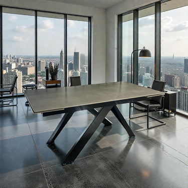 მართკუთხა ფორმის მაგიდა თანამედროვე ინტერიერისთვის. მკაფიო ხაზები და დაბალანსებული პროპორციები ქმნის სოლიდურ და მოწესრიგებულ ვიზუალს, რომელიც ერთნაირად უხდება როგორც საცხოვრებელ, ისე სამუშაო სივრცეს.