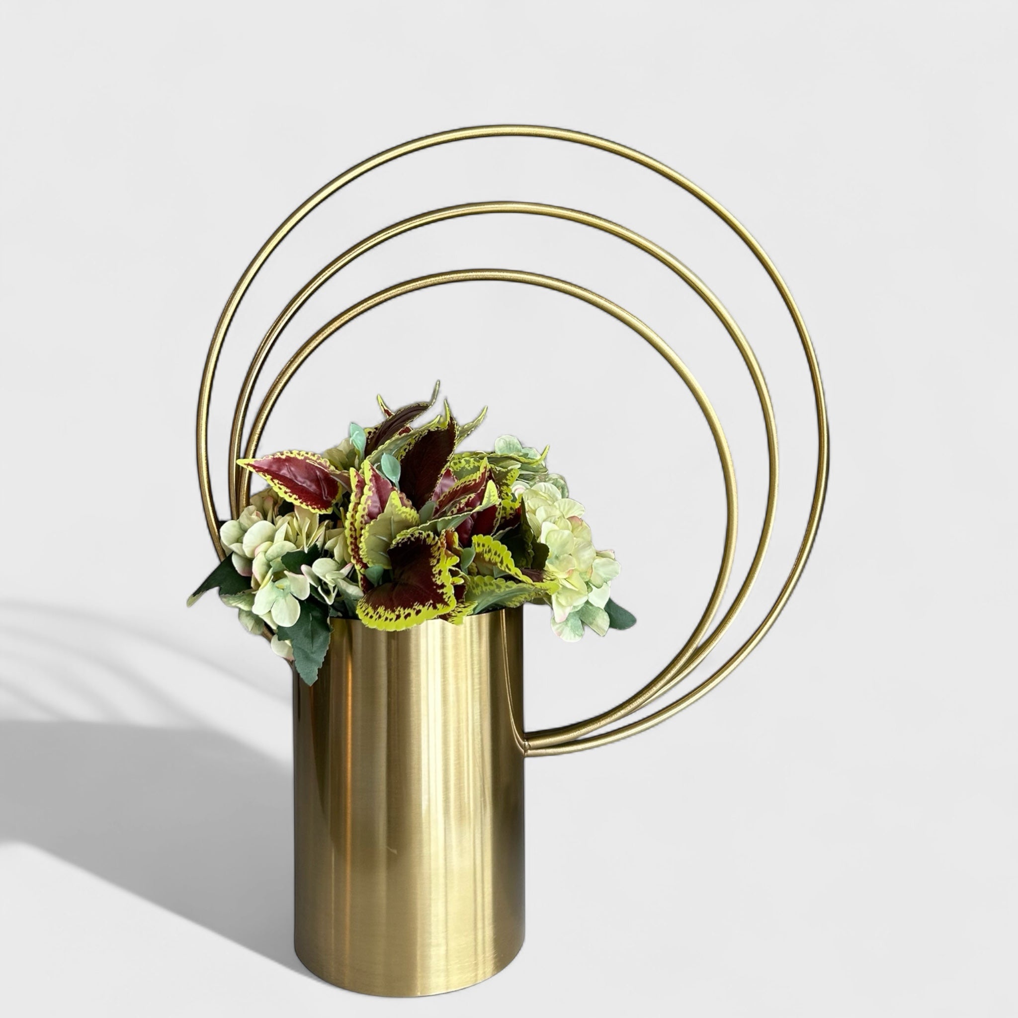 საყვავილე გამოირჩევა გეომეტრიული რგოლებით, რომლებიც ქმნის ჰაეროვნულ და თანამედროვე იერს. მის დიზაინში სუფთა ხაზები და ოქროსფერი ელფერი სრულად ერწყმის ერთმანეთს.