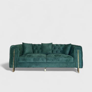 დივანი დამზადებულია გამძლე ჩარჩოზე, რომელიც სტაბილურობასა და კომფორტს უზრუნველყოფს. ოქროსფერი ვერტიკალური დეტალი კი მოდელს მოდერნისტულ ელემენტს სძენს და აძლიერებს საერთო კომპოზიციას.