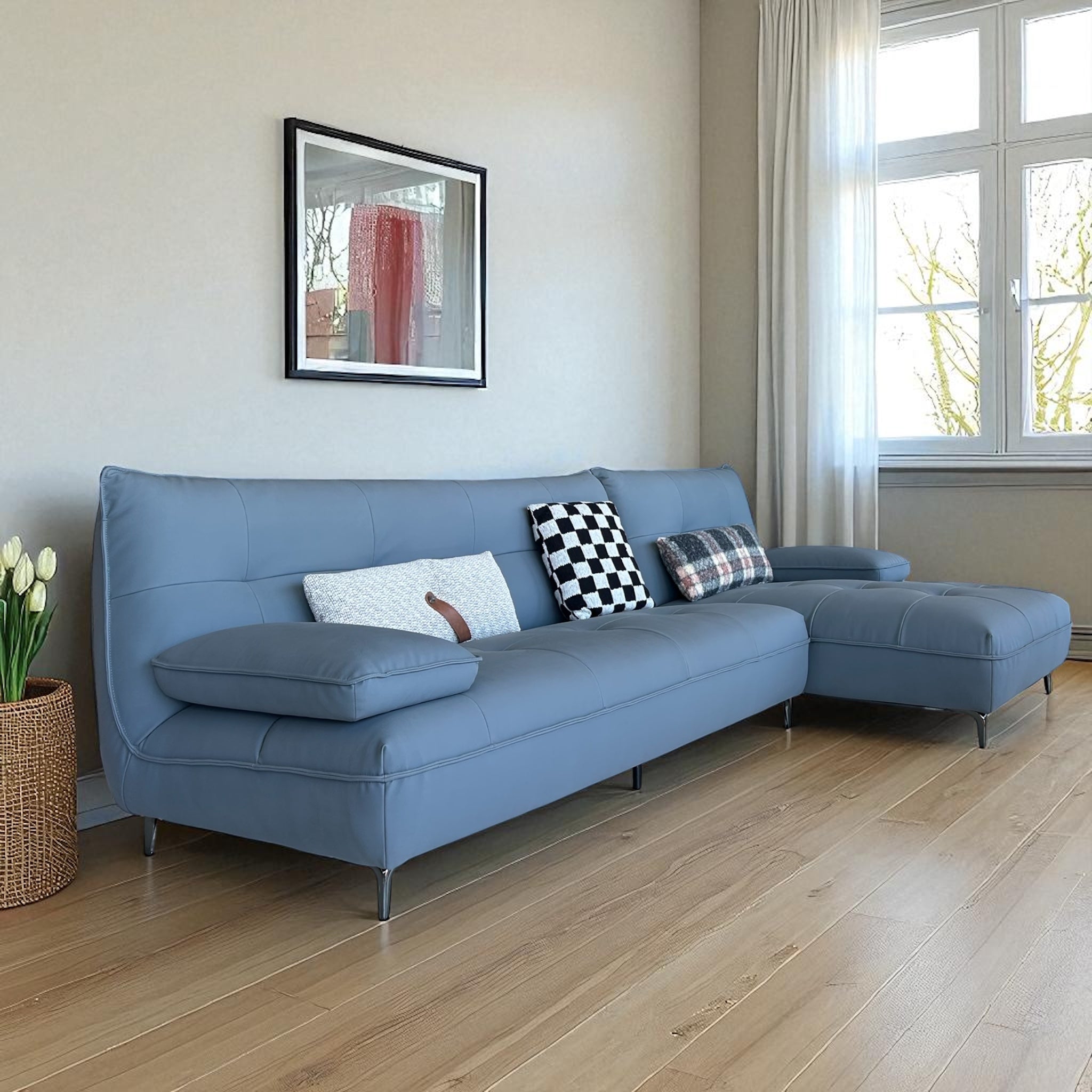 დივანი გამოირჩევა სუფთა, თანამედროვე ხაზებითა და დახვეწილი ვიზუალით, რომელიც ინტერიერში სიმყუდროვესა და სტილს ერთდროულად შემოაქვს. მისი კომპოზიცია იდეალურად ერწყმის როგორც კლასიკურ, ისე თანამედროვე სივრცეს.