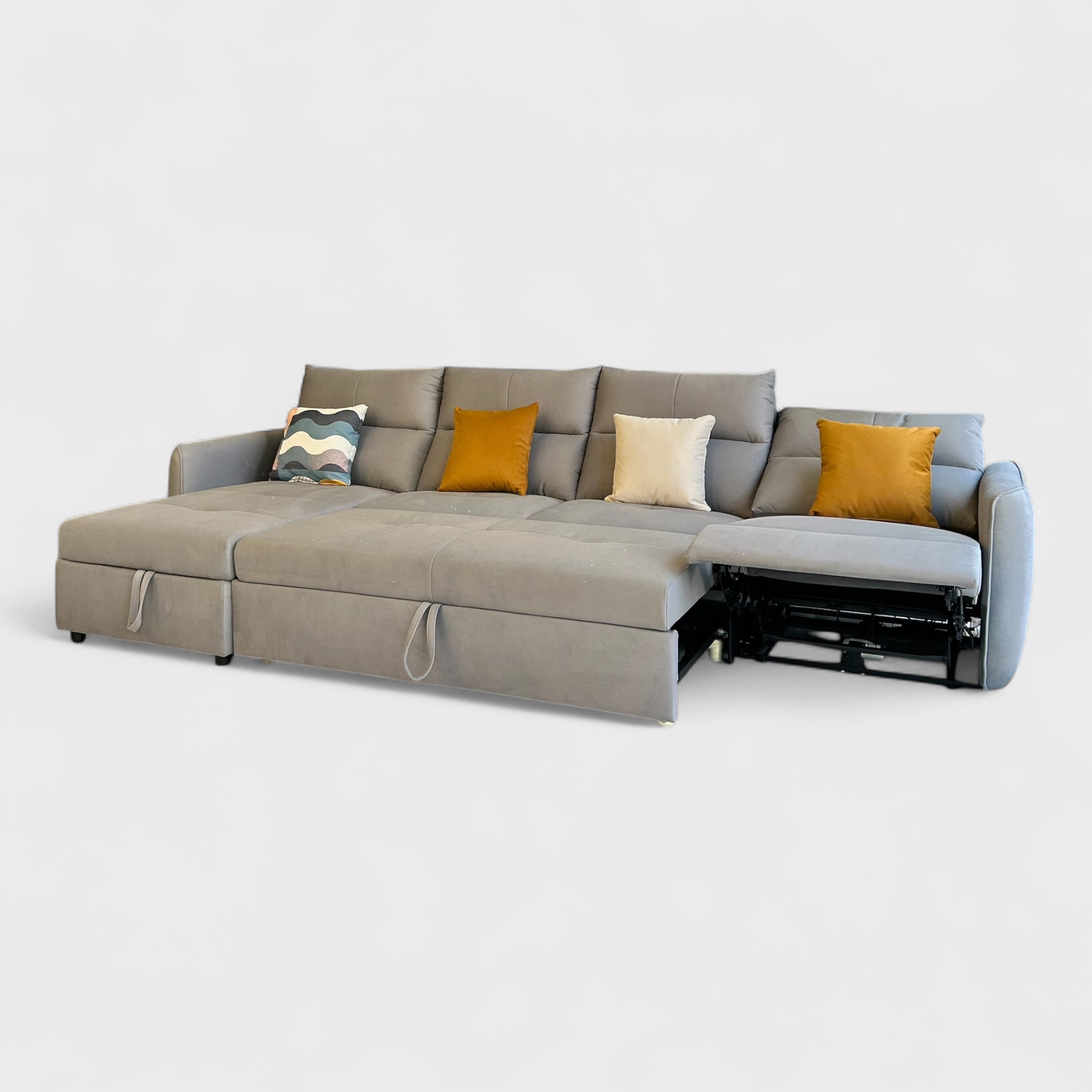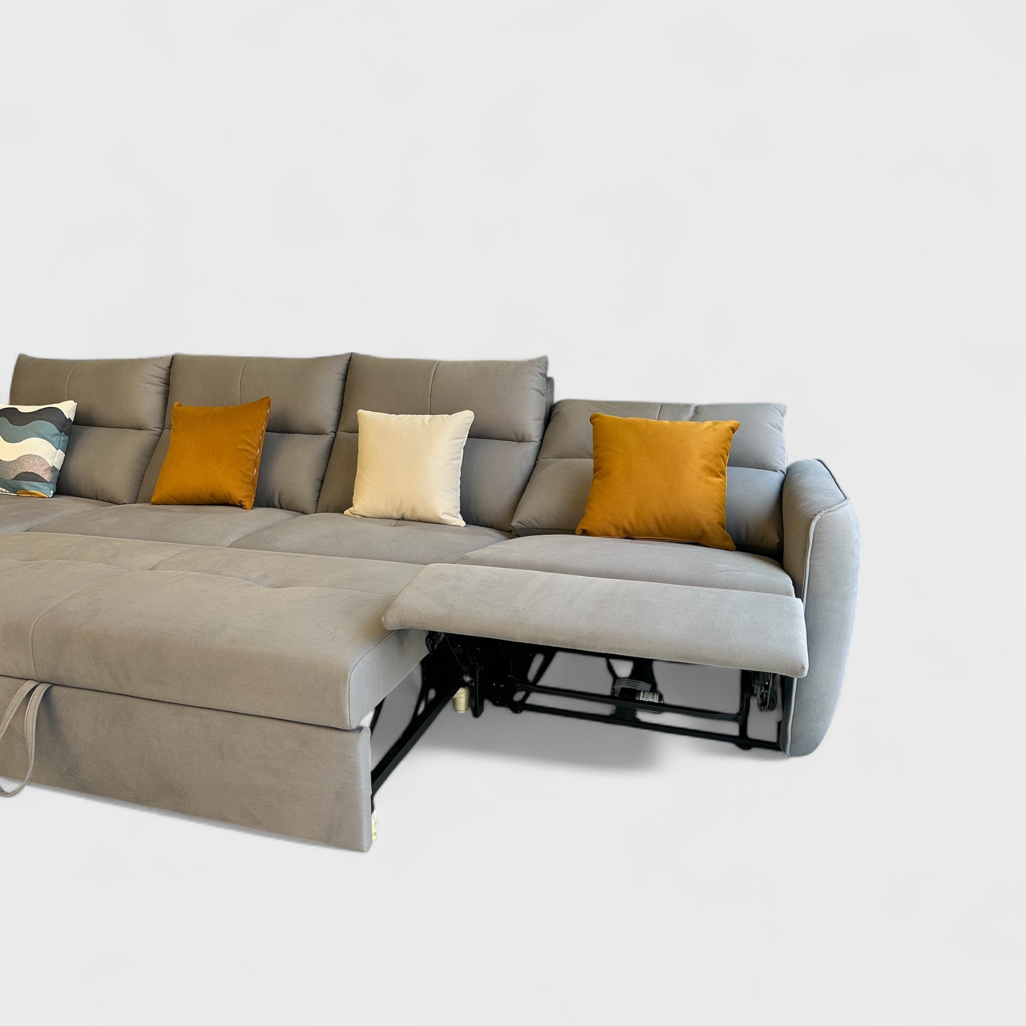 დივანი აღჭურვილია ელექტრო მექანიზმით, რომელიც საშუალებას გაძლევთ მარტივად შეცვალოთ საზურგის ან ფეხის საყრდენის პოზიცია — იდეალური გადაწყვეტილებაა დასვენებისთვის. დამატებით გააჩნია შენახვის ადგილი ბალიშებისა და ტექსტილისთვის.