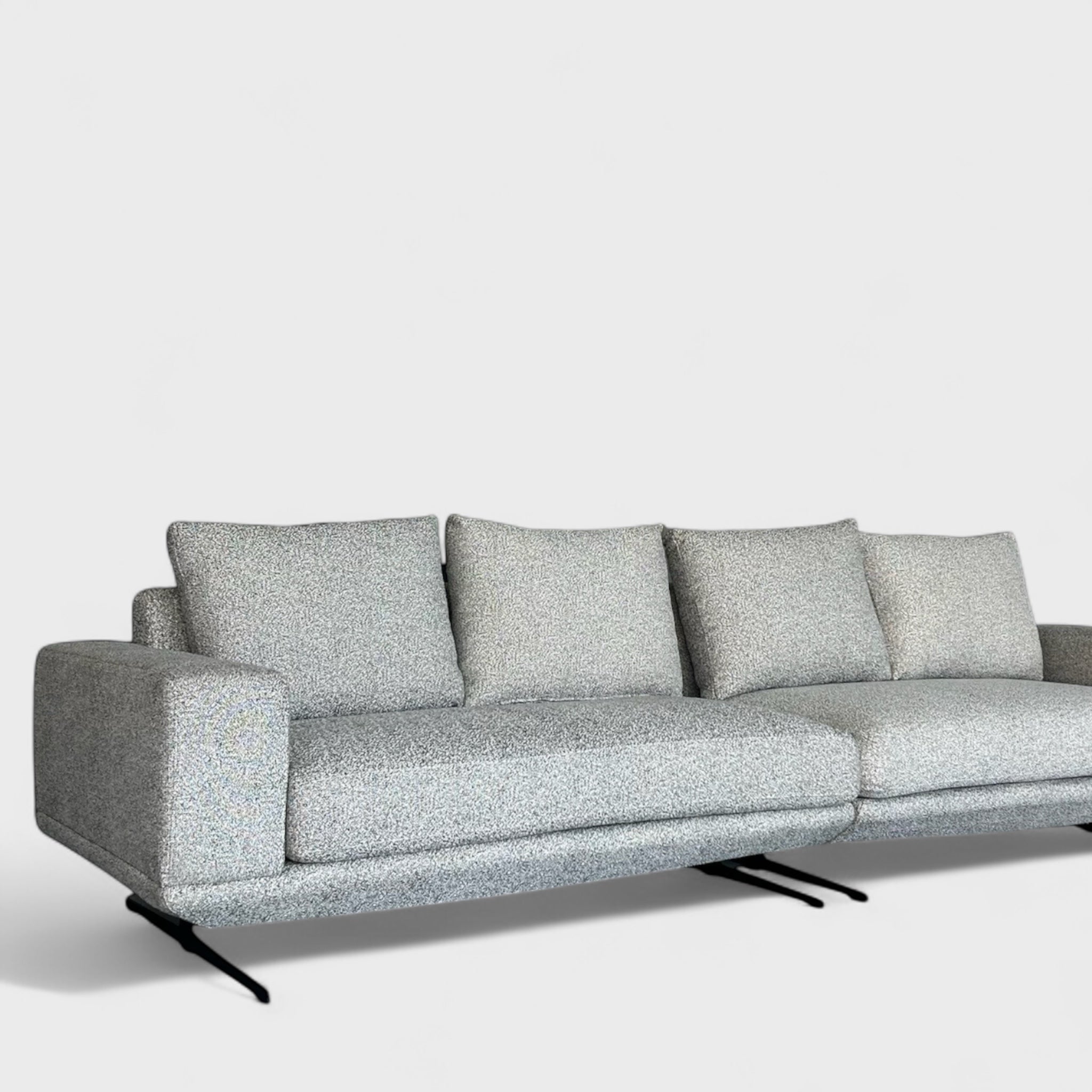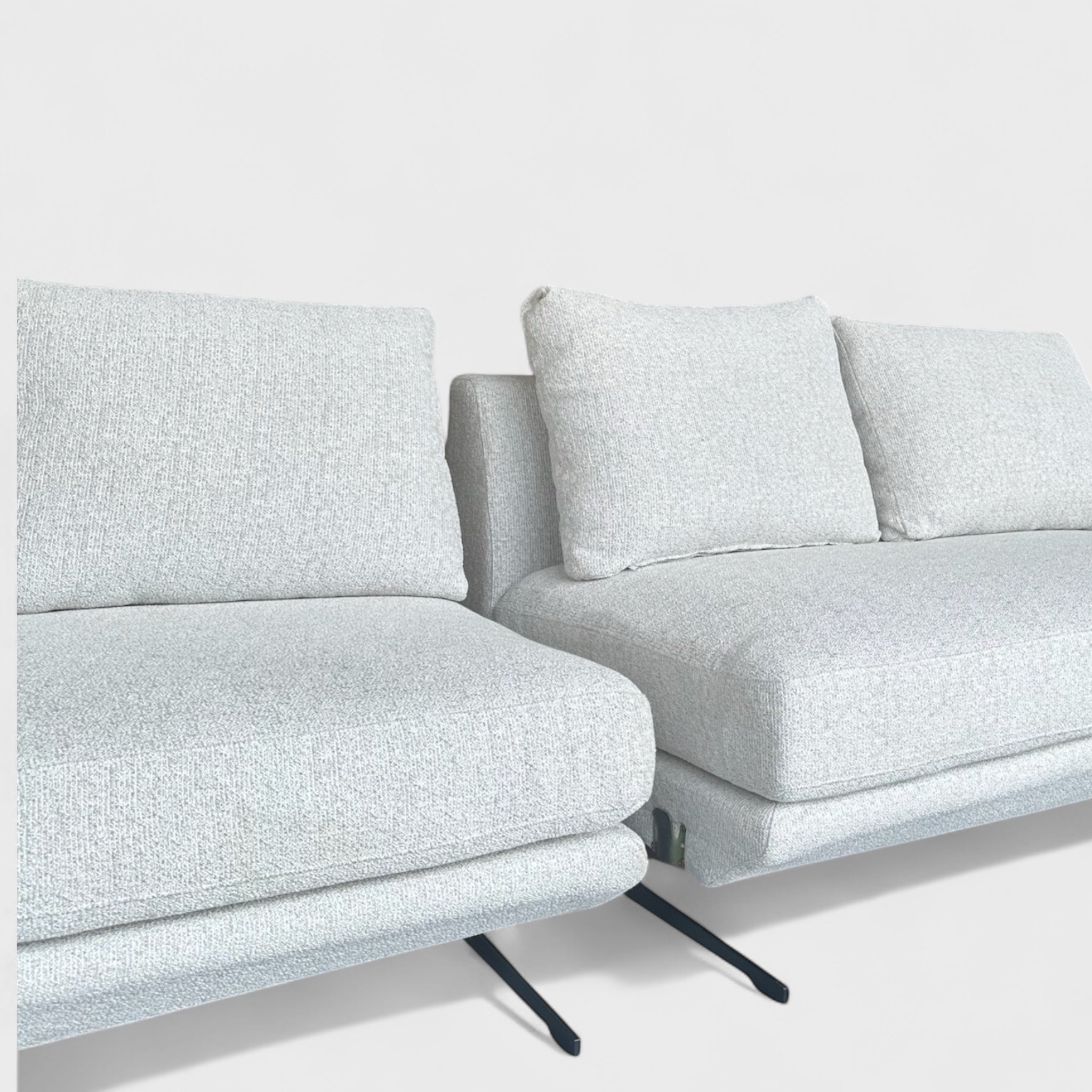 დივანი დგას გამძლე მეტალის ფეხებზე, რაც ერთდროულად სიმყარეს და მსუბუქ ვიზუალს ქმნის. თითოეული ელემენტი მორგებულია მაქსიმალურ პრაქტიკულობასა და მოხერხებულობაზე.