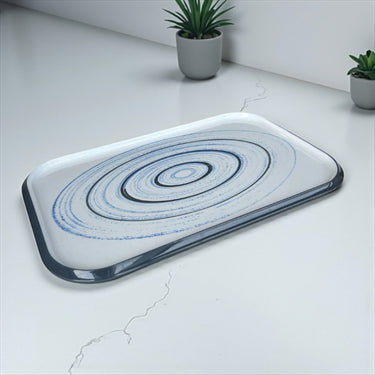 გლუვი მართკუთხა ფორმა და წრიული ორნამენტები თეფშს თანამედროვე და ჰარმონიულ იერს აძლევს. მისი დიზაინი იდეალურია როგორც ყოველდღიური, ისე განსაკუთრებული სუფრისთვის.