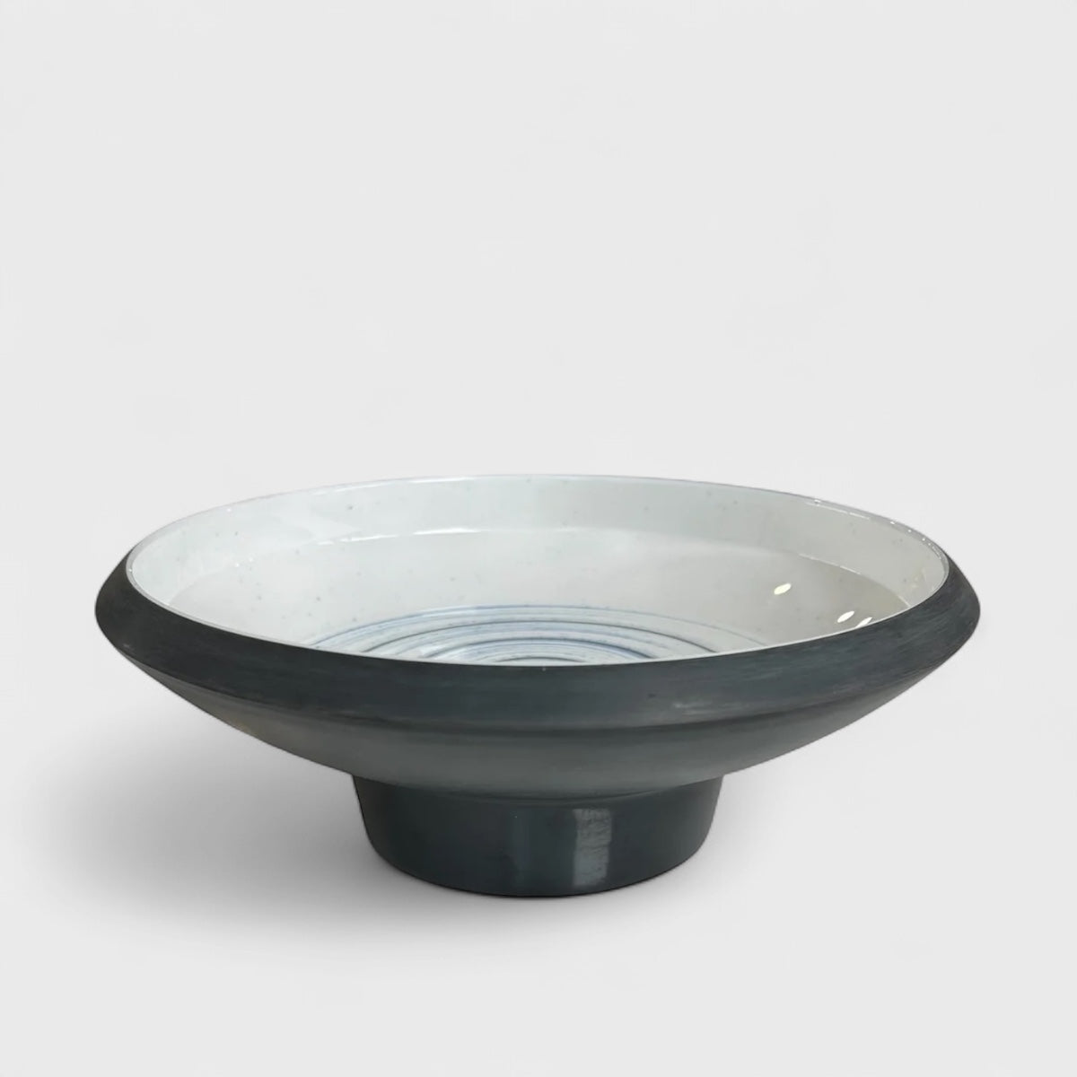 მომრგვალებული ფორმა და თეთრ ფონზე განლაგებული ლურჯი რგოლები ქმნის ელეგანტურ და ჰარმონიულ ვიზუალს. ეს დიზაინი სუფრას მსუბუქ და სუფთა განწყობას ანიჭებს.