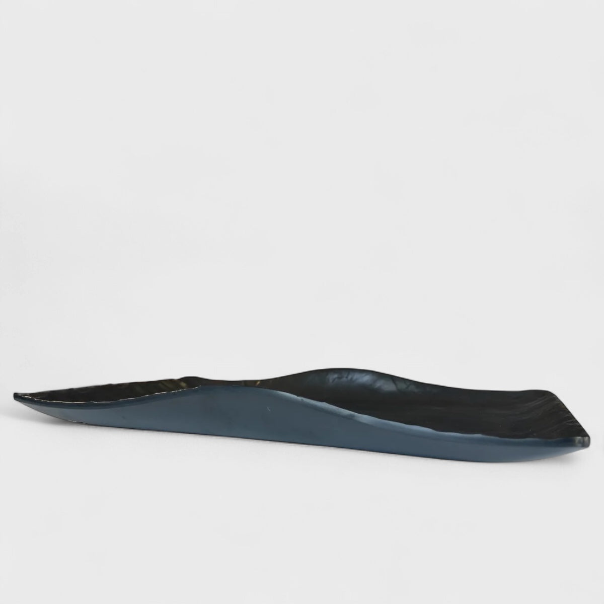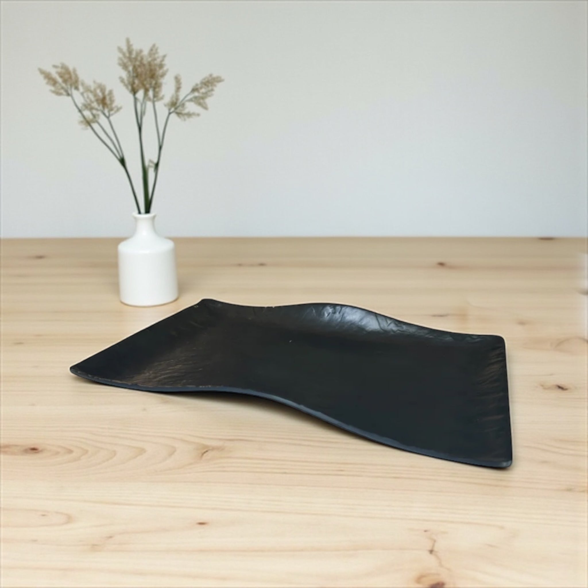 თეფშის დინამიკური ფორმა ხაზს უსვამს მოძრაობასა და ბუნებრივი ტალღის მსგავს პლასტიკას. მის მუქ ტონალობას დამატებით ელეგანტურობას აძლევს არასწორი, ორგანული ხაზები, რაც სუფრას თანამედროვე არტისტულ იერს ანიჭებს.