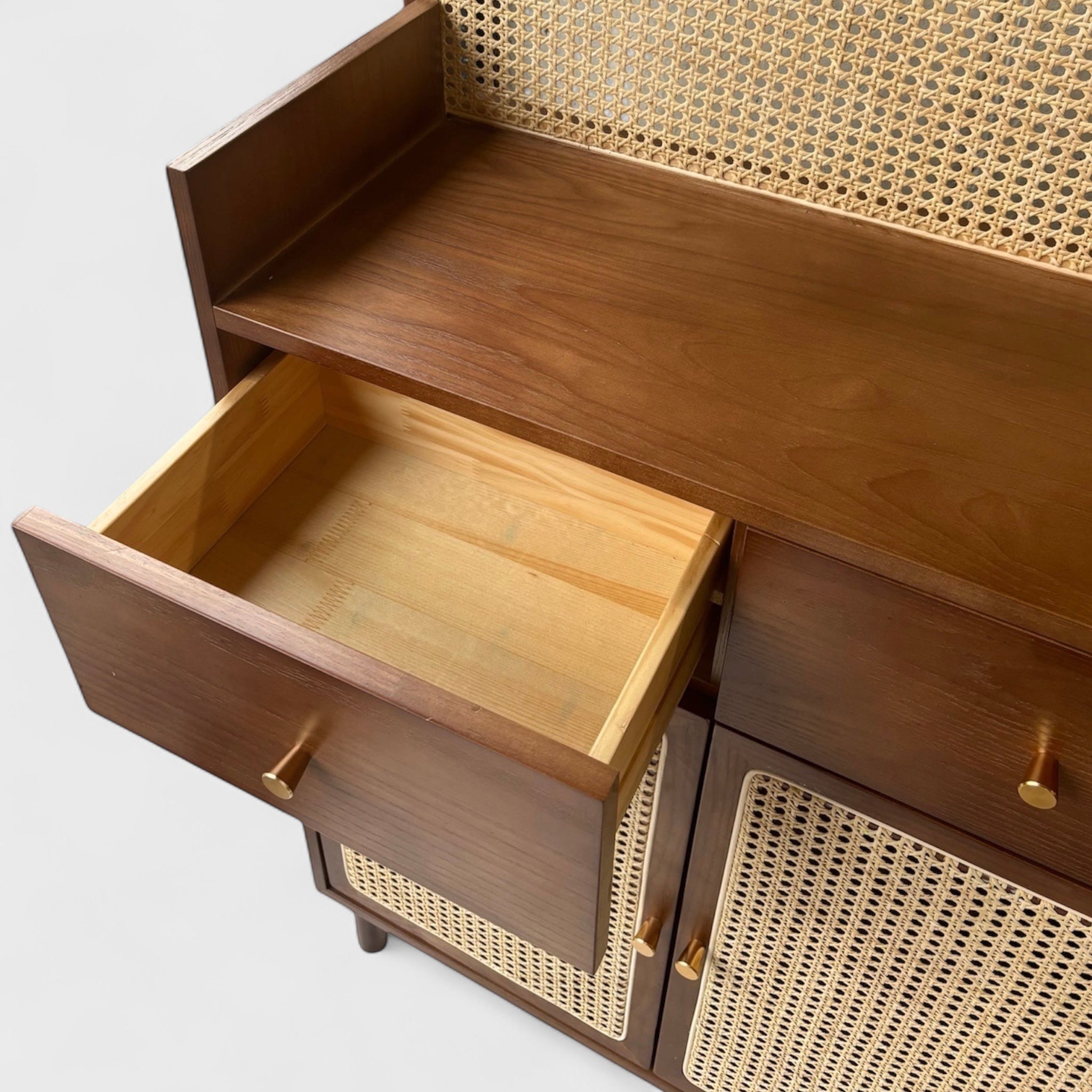 ბუნებრივი ხის და რათანის კომბინაცია ავეჯს სძენს თბილ და ჰარმონიულ იერს, რომელიც ინტერიერში სიმშვიდესა და კომფორტს შემოიტანს.