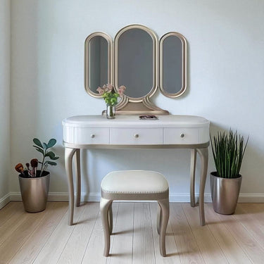 სამი ფართო სარკე უზრუნველყოფს კომფორტულ გამოყენებას, ხოლო უჯრები საშუალებას იძლევა ყველა აქსესუარი და კოსმეტიკა ორგანიზებულად შეინახოთ.