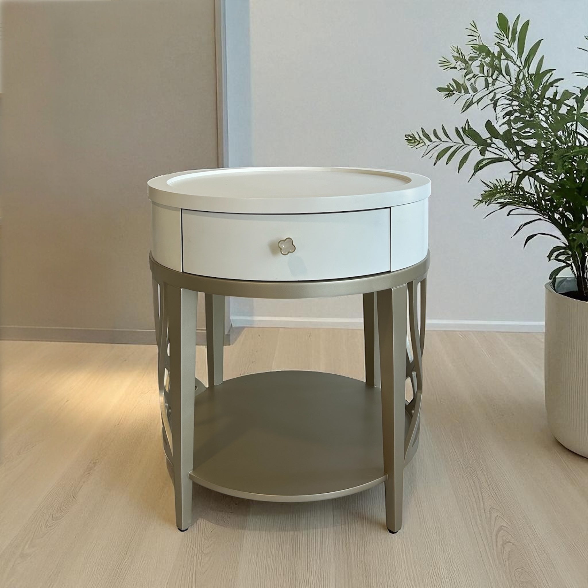 მცირე უჯრა უზრუნველყოფს პირადი ნივთების ორგანიზებულ შენახვას, ხოლო ქვედა თარო დამატებით სივრცეს ქმნის წიგნებისთვის ან აქსესუარებისთვის.