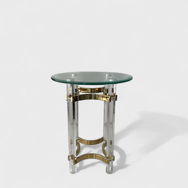 მრგვალი მინის ზედაპირი გამჭვირვალე და მსუბუქი ვიზუალის მატარებელია, ხოლო ეპოქსიდის გამჭვირვალე ფეხები და ოქროსფერი მეტალის დამაგრება ამყარებს საერთო კონსტრუქციას და ამავდროულად ანიჭებს გლამურს.