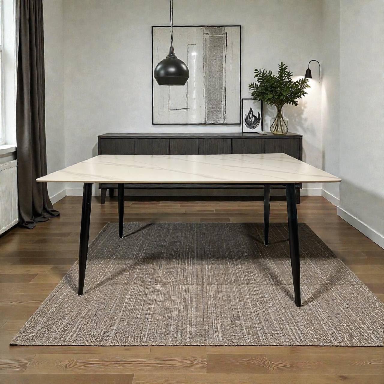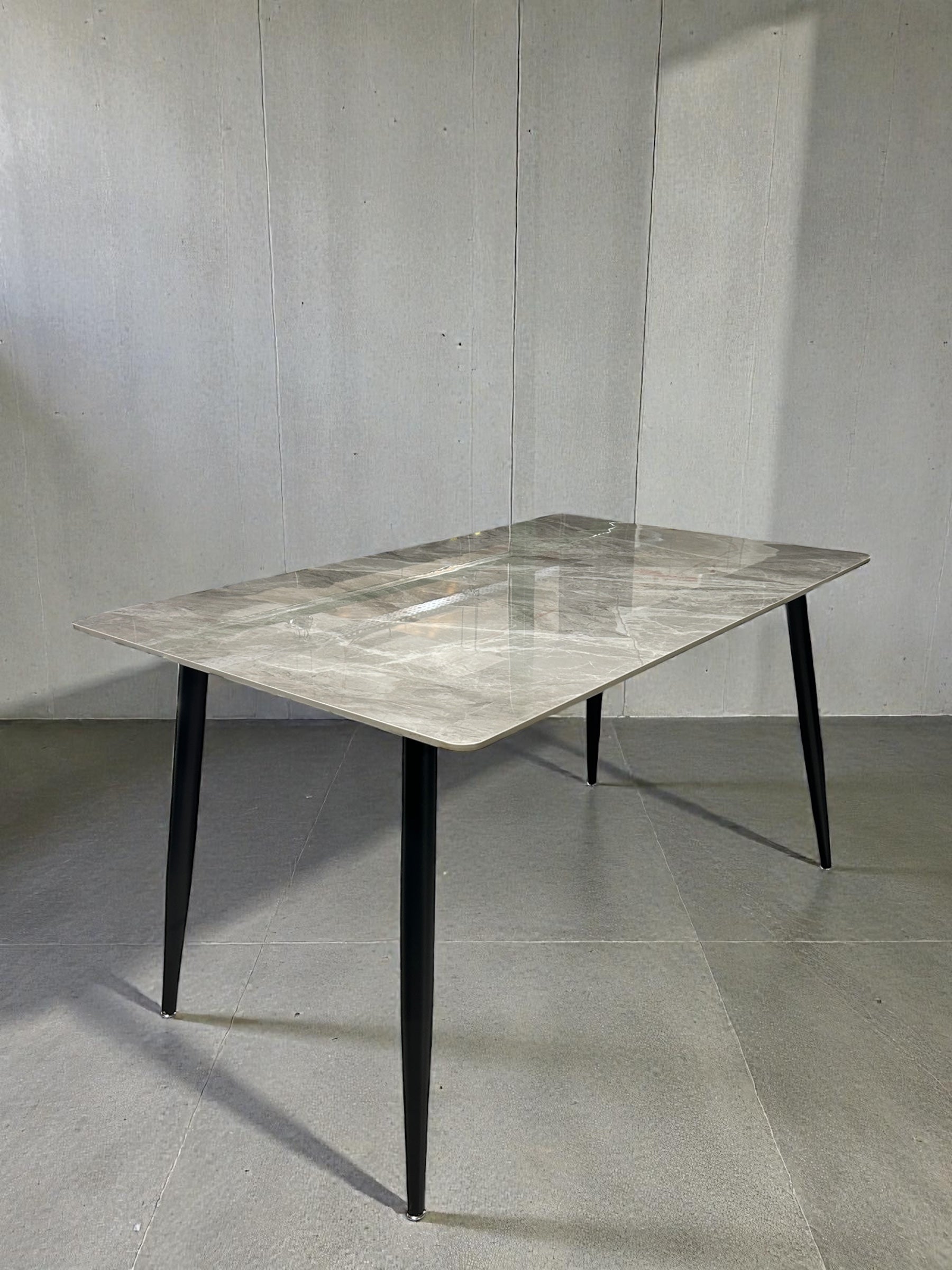 მართკუთხა ფორმისა და სუფთა გეომეტრიის მქონე მაგიდა გამოირჩევა მშვიდი, თანამედროვე ვიზუალით. ზედაპირის დახვეწილი ტექსტურა და შავი, თხელი ფეხები ქმნის მსუბუქ და მოწესრიგებულ შთაბეჭდილებას, რომელიც მარტივად ერგება თანამედროვე ინტერიერს.