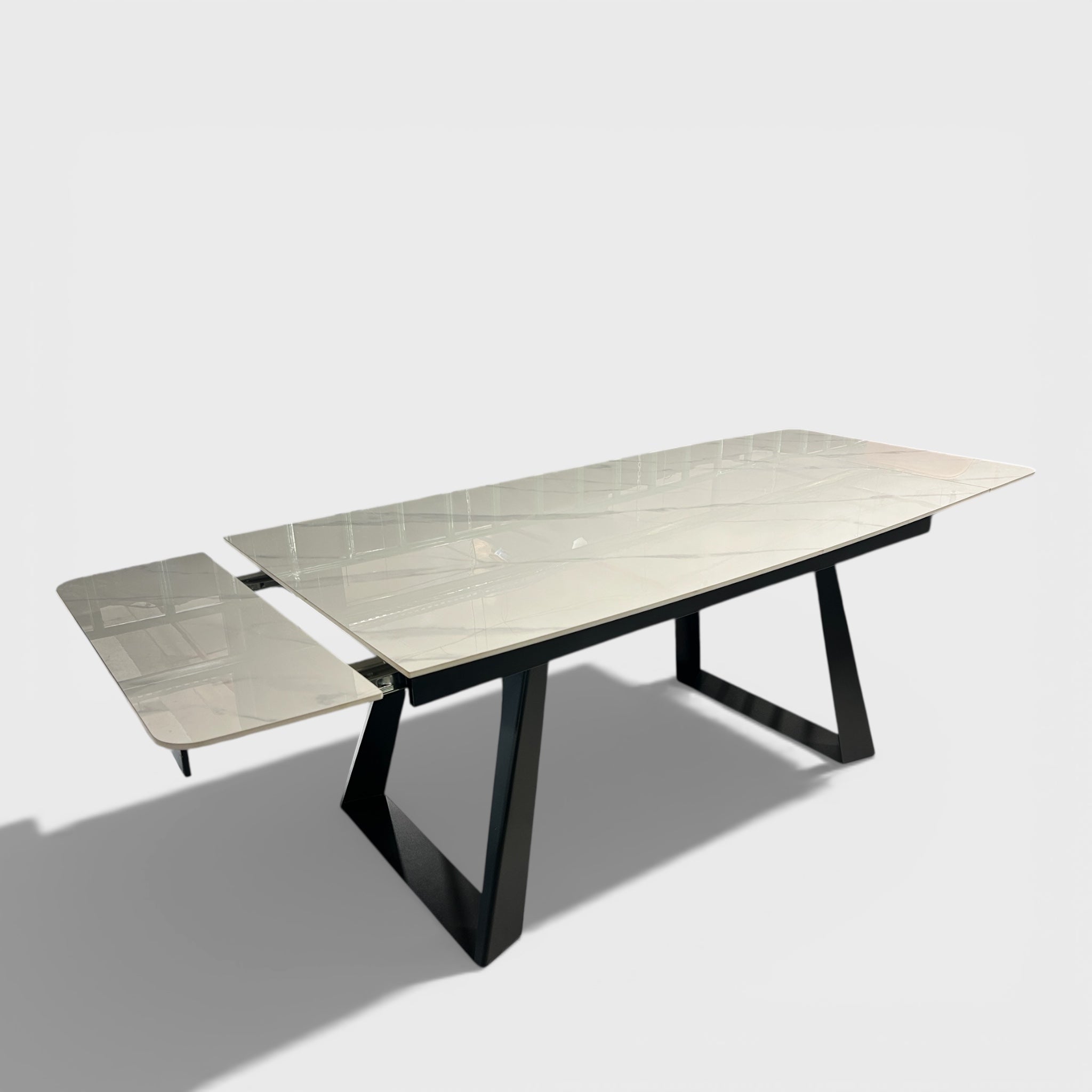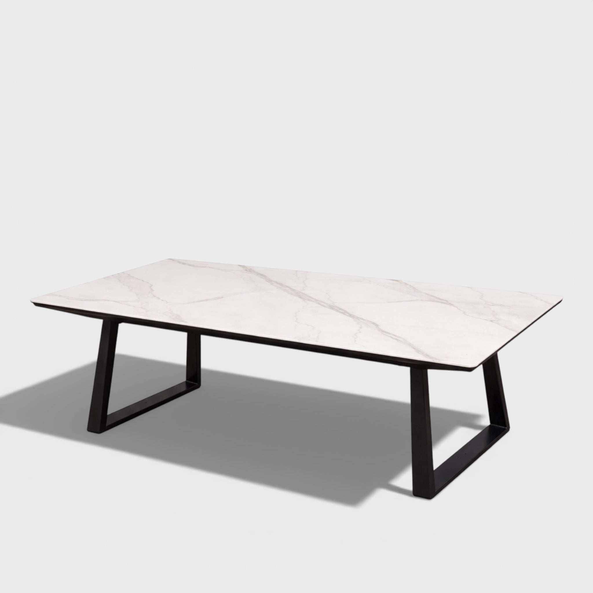 ეს მაგიდა გამოირჩევა სწორი, სუფთა ხაზებით და თანამედროვე სილუეტით. ზედაპირის ელეგანტური ვიზუალი და მკაცრი მეტალის ფეხები ქმნის ბალანსს სიმსუბუქესა და ძალას შორის.იდეალურია როგორც თანამედროვე სასადილო სივრცისთვის, ისე წარმომადგენლობითი ინტერიერისთვის.
