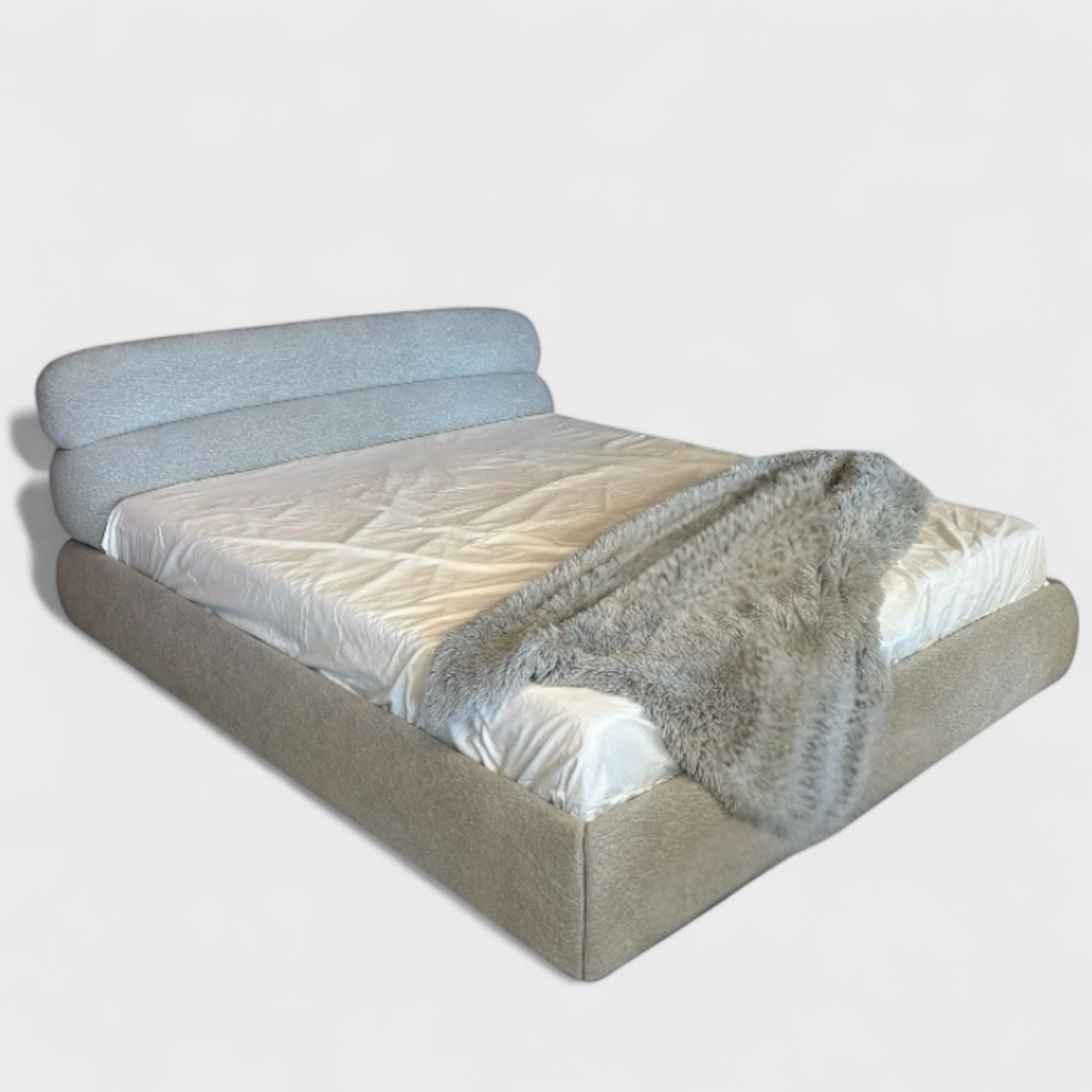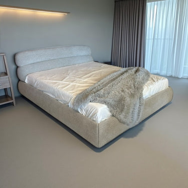 მომრგვალებული ფორმები და რბილი ტექსტურა ქმნის დახვეწილ და თანამედროვე იერს. ეს დიზაინი ხაზს უსვამს სიმყუდროვეს და ელეგანტურობას საძინებელში.