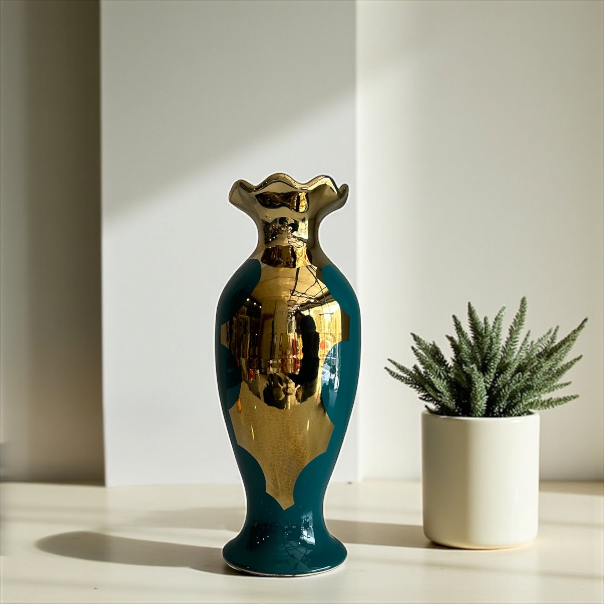 მბზინავი კერამიკა ოქროსფერი დეტალებით უზრუნველყოფს ელეგანტურ იერს და გამძლეობას, რომელიც ხანგრძლივად ინარჩუნებს თავდაპირველ სილამაზეს.