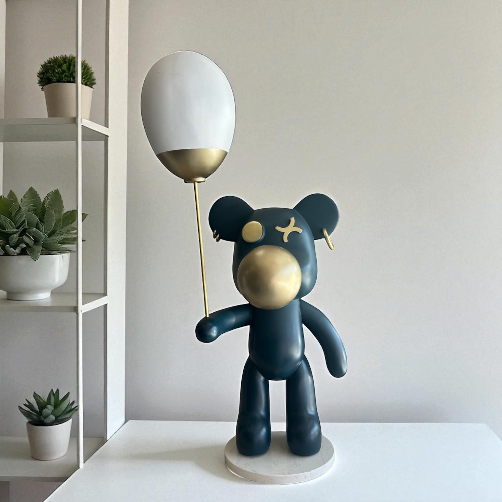 თანამედროვე სკულპტურა, რომელიც ინტერიერს ხალისსა და გამორჩეულობას სძენს. ბუშტით ხელში მდგომი დათუნია მიმზიდველად იპყრობს ყურადღებას და ოთახს არასტანდარტულ შტრიხს მატებს.