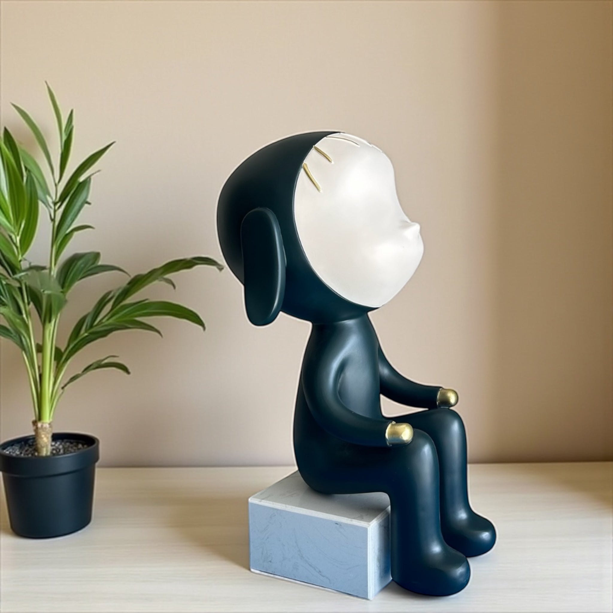 🔹 ყავისფერი ფიგურა – მჯდომარე პერსონაჟი