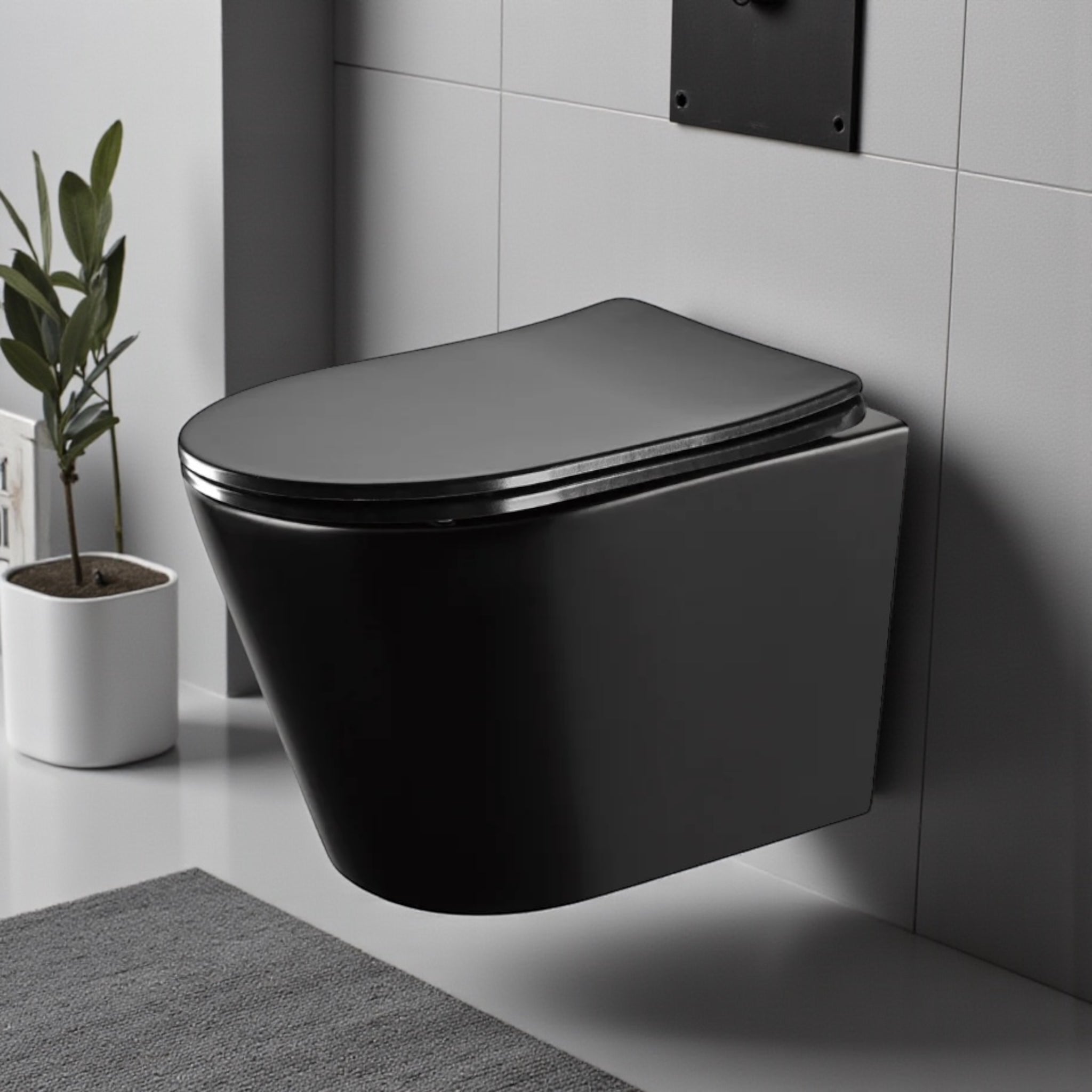 მუქი ტონალობის კედელში ჩასაშენებელი უნიტაზი წარმოსახავს თანამედროვე ინტერიერის გამბედავ და ელეგანტურ შტრიხს. მისი მყარი ფორმა და მქრქალი ზედაპირი ქმნის დახვეწილ კონტრასტს ღია სივრცეებთან, რაც აბაზანას ანიჭებს მაღალი კლასის ვიზუალს.