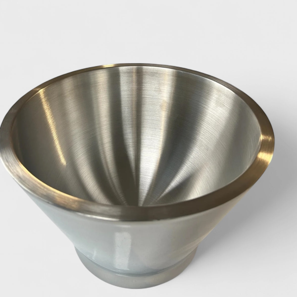 მინიმალური ფორმის და გლუვი ზედაპირის კომბინაცია ამ თასს თანამედროვე ელფერს აძლევს. პრიალა მეტალის ბზინვარება ელეგანტურად ასახავს სინათლეს და გამორჩეულად გამოიყურება ნებისმიერ სუფრაზე ან ბარში.