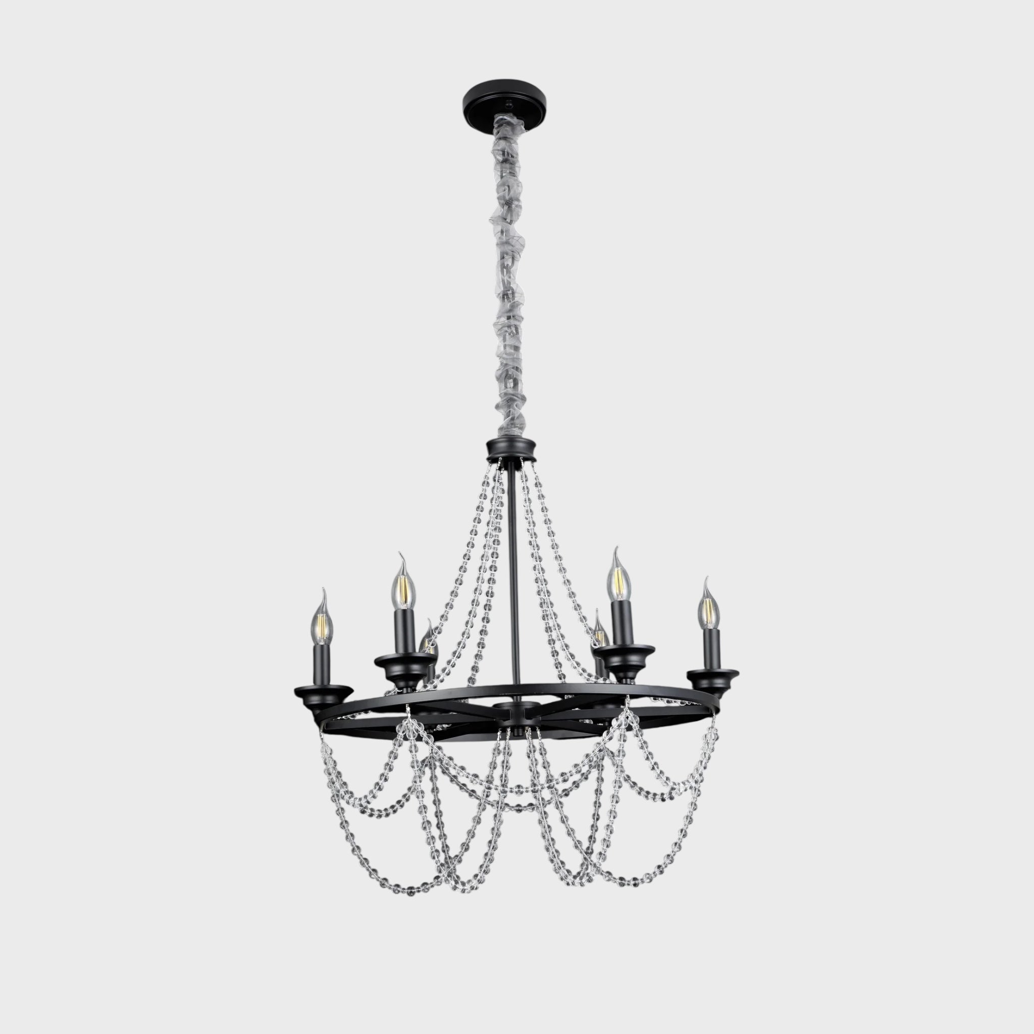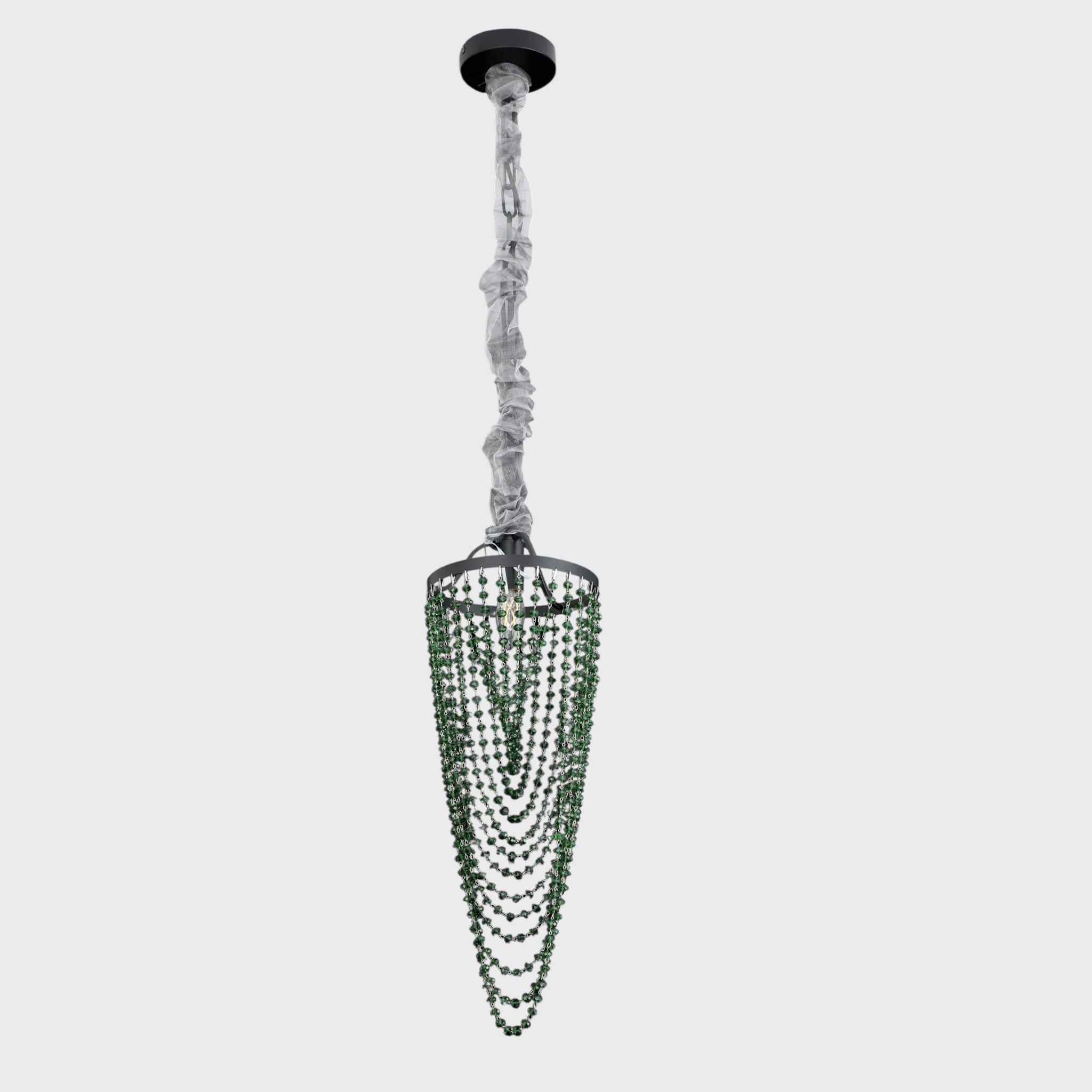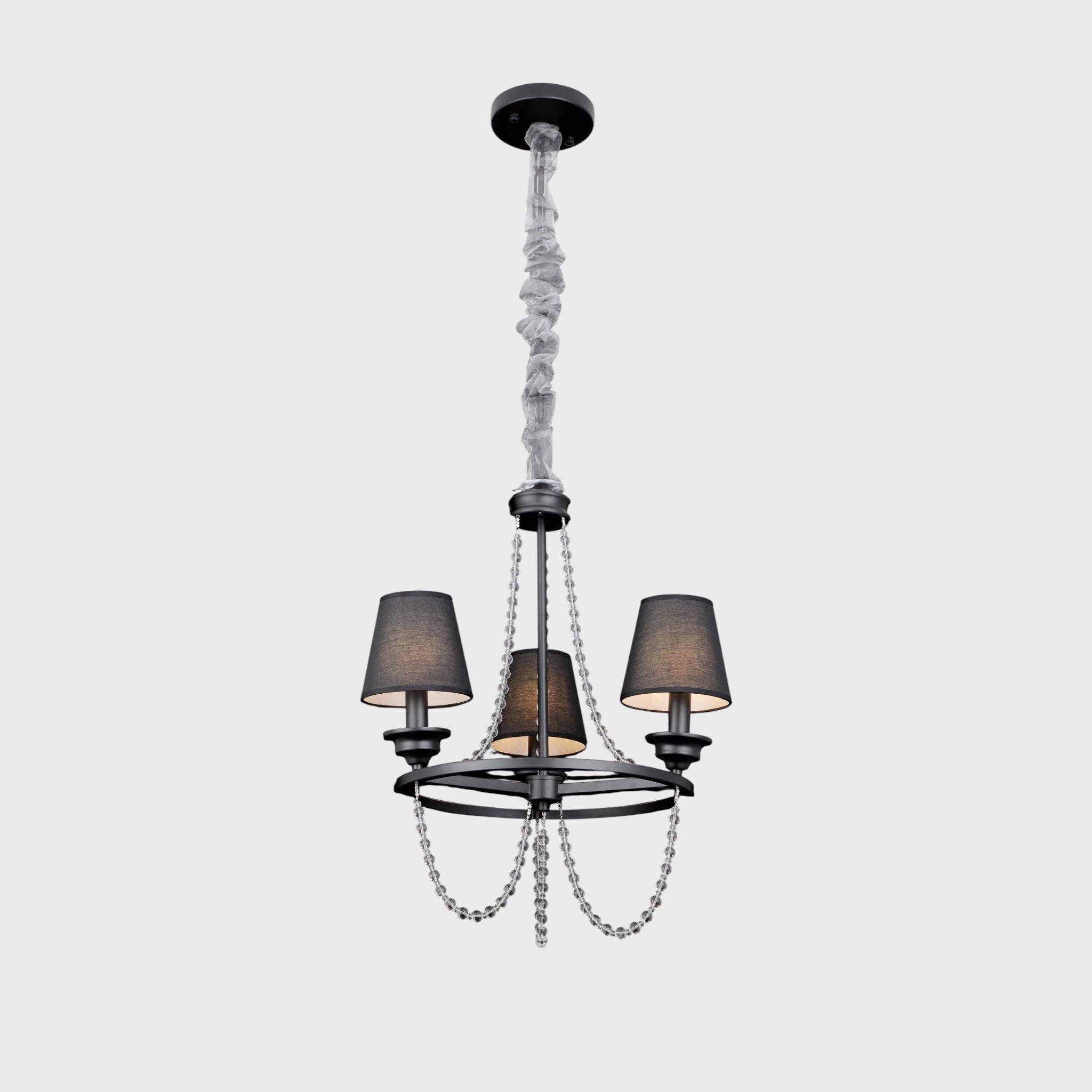 მეტალის შავი კონსტრუქცია და ფაზებად ჩამოკიდებული ბროლის ძაფები ქმნის ელეგანტურ, კლასიკურ იერს, რომელიც იდეალურად ერწყმის როგორც თანამედროვე, ისე კლასიკურ ინტერიერს.