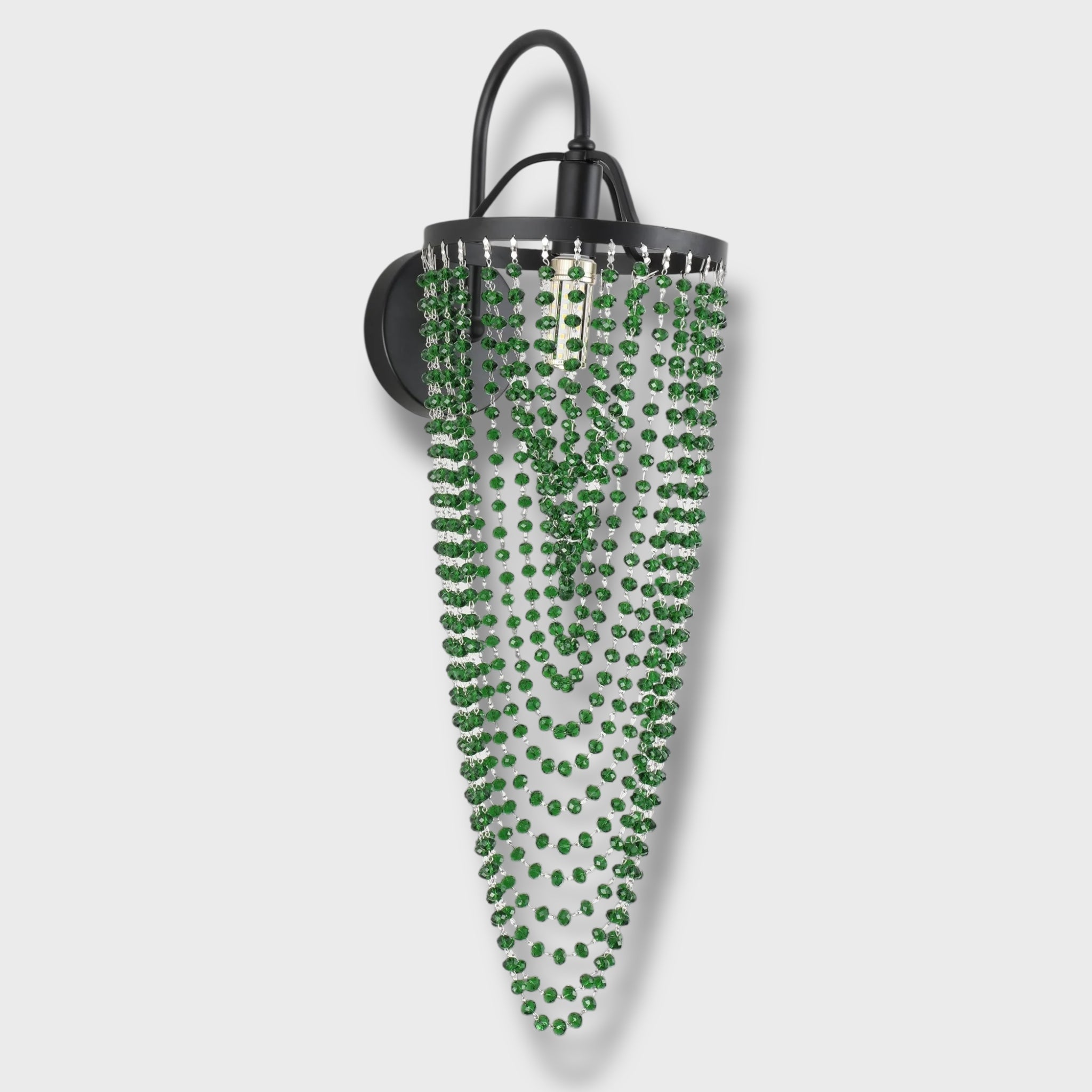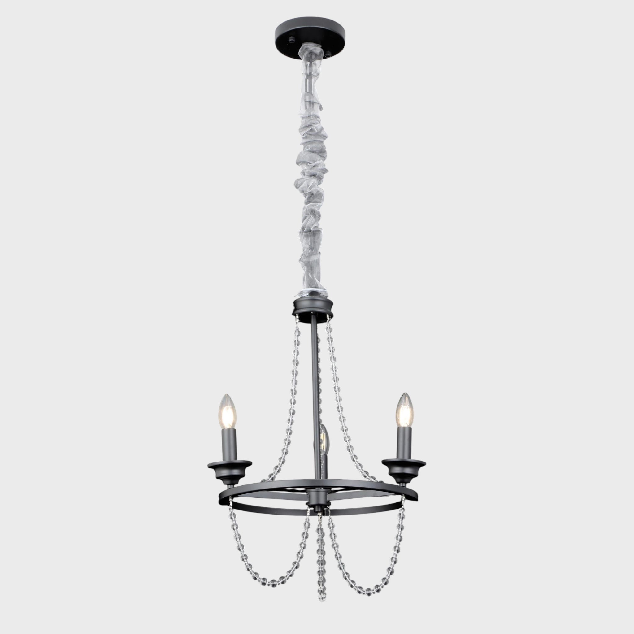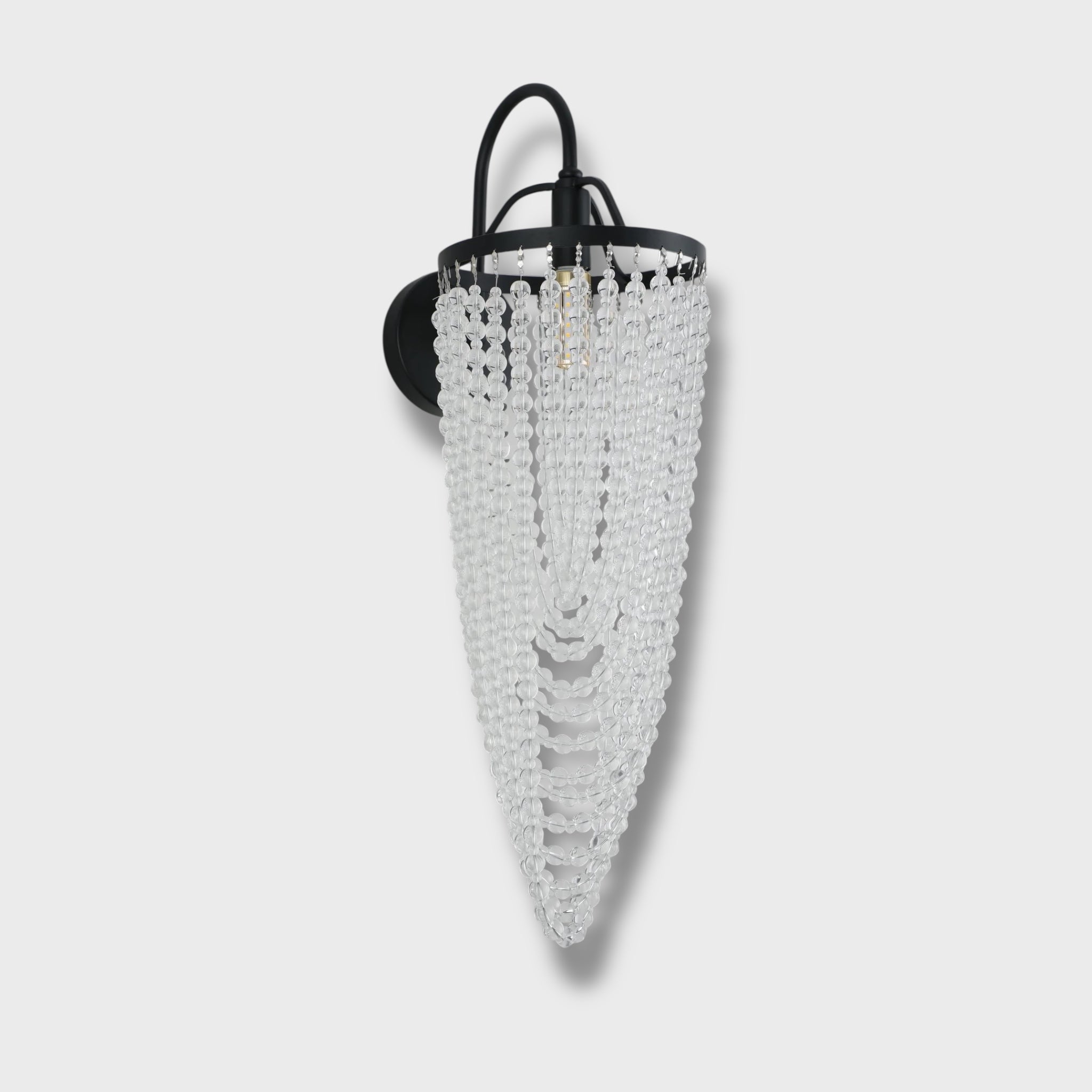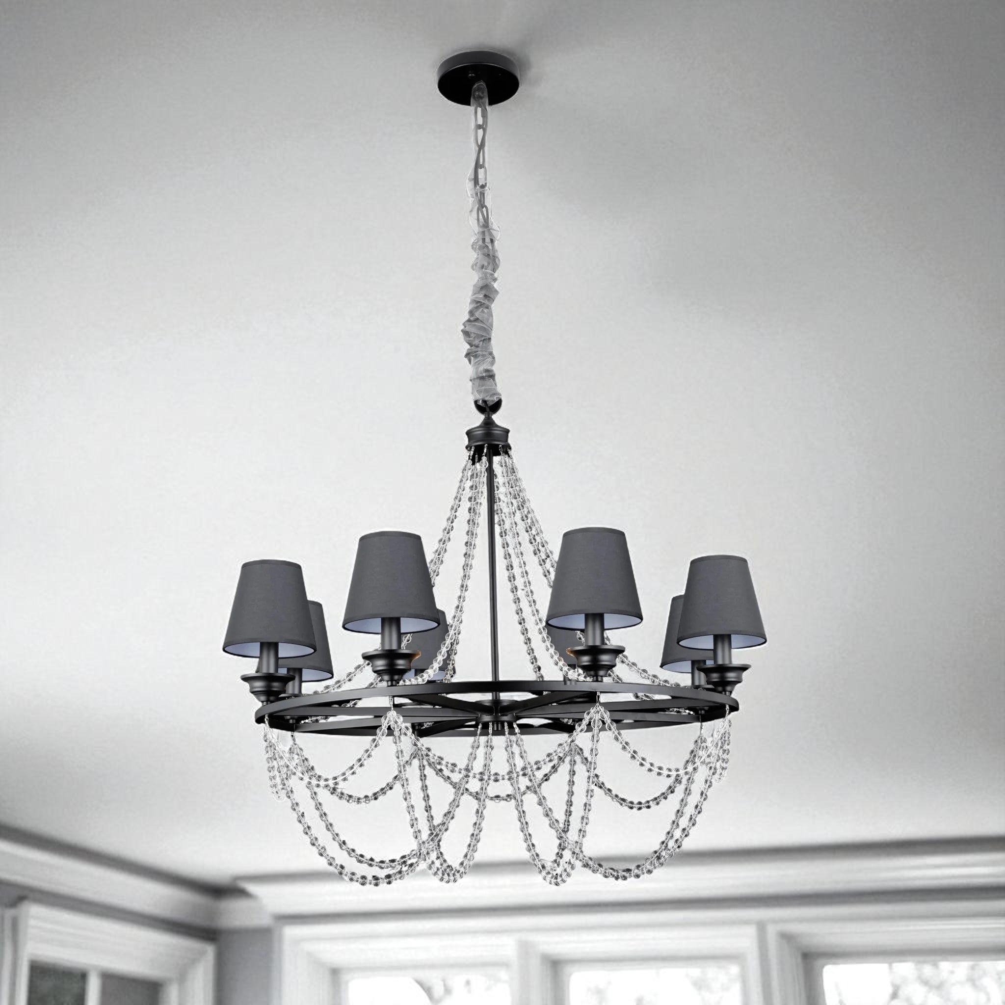 მეტალის შავი კონსტრუქცია და ფაზებად ჩამოკიდებული ბროლის ძაფები ქმნის ელეგანტურ, კლასიკურ იერს, რომელიც იდეალურად ერწყმის როგორც თანამედროვე, ისე კლასიკურ ინტერიერს.